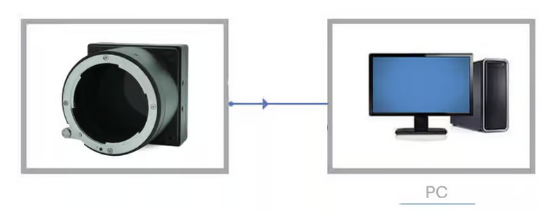 Workflow der KAYA Vision Small, Rugged, Low Power Camera: Interaktionsschema zwischen Kamera und PC mit Vision Point Software und SDK.